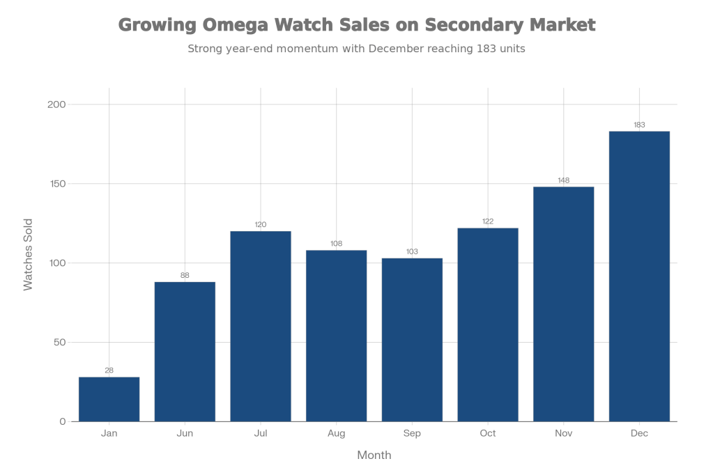 - Higher plateau: December’s 183 suggests Omega has emerged from the turbulence with more consistent secondary‑market demand than it had at the start of the year.